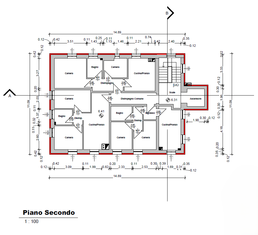 Al secondo piano dello stabile si trovano altri tre appartamenti, tutti composti dalla zona giorno, due camere e un bagno.